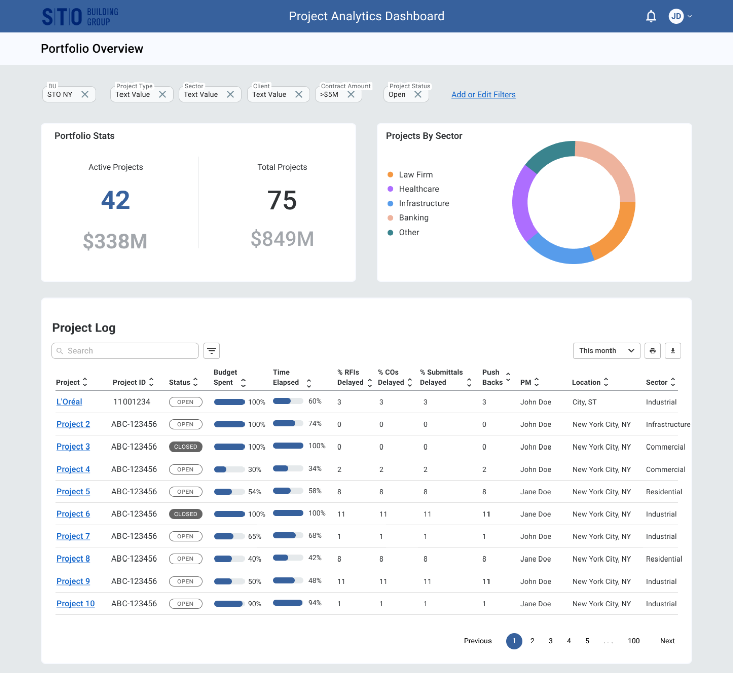 STO Building Group (STOBG) is a family of construction companies. They came to Deloitte looking for help developing an analytics dashboard that would be powered by looker, to allow employees to view key information in one place.